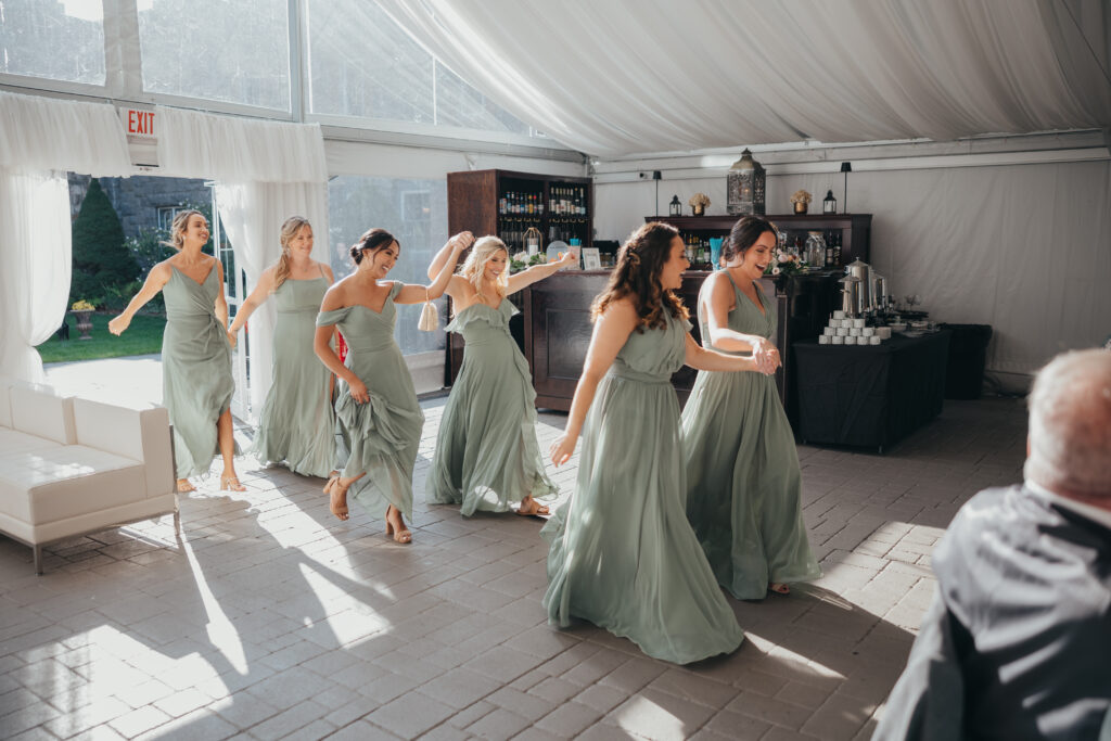 It was the bridal party getting introduced and going absolutely HAM to pump up the guests and get the party started.